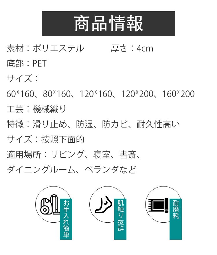 【北欧風厚手ラグマット】柔らかい、滑り止め、毛落ちしない、色落ちしない、洗濯機洗い可能
