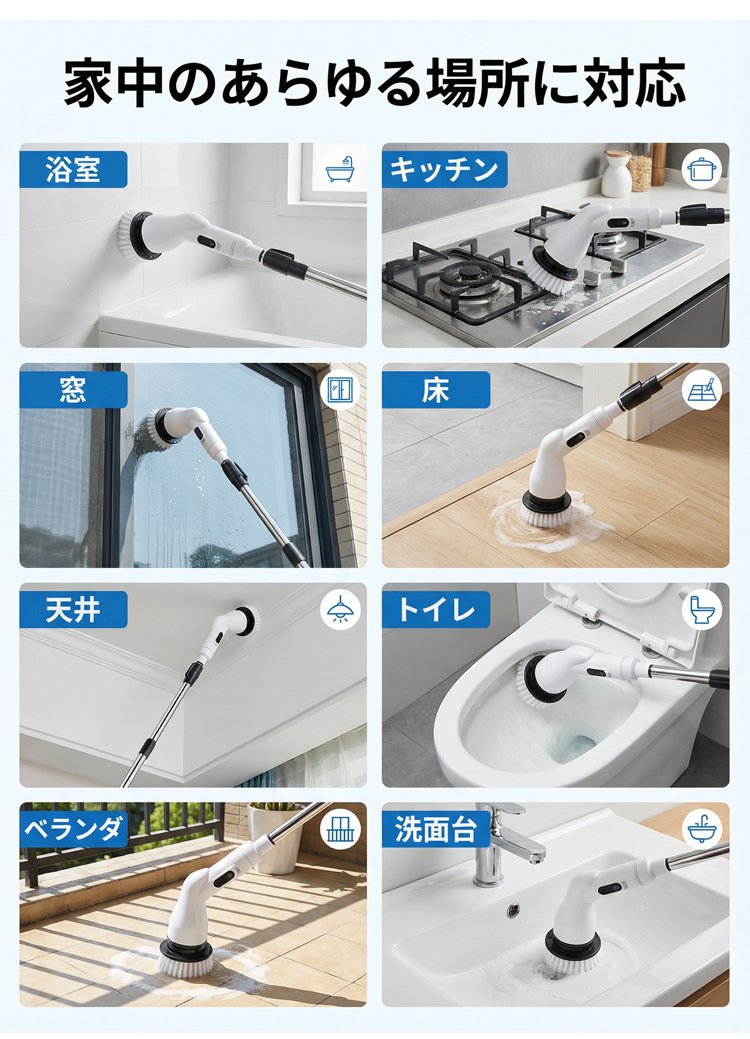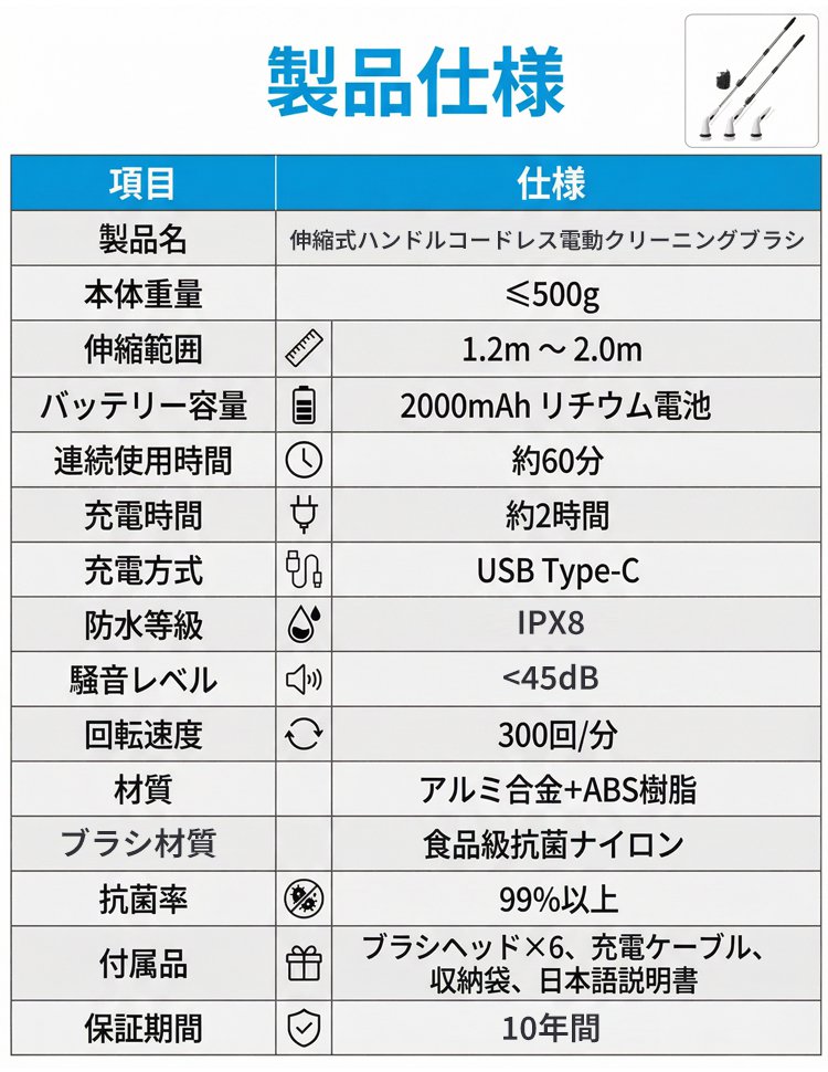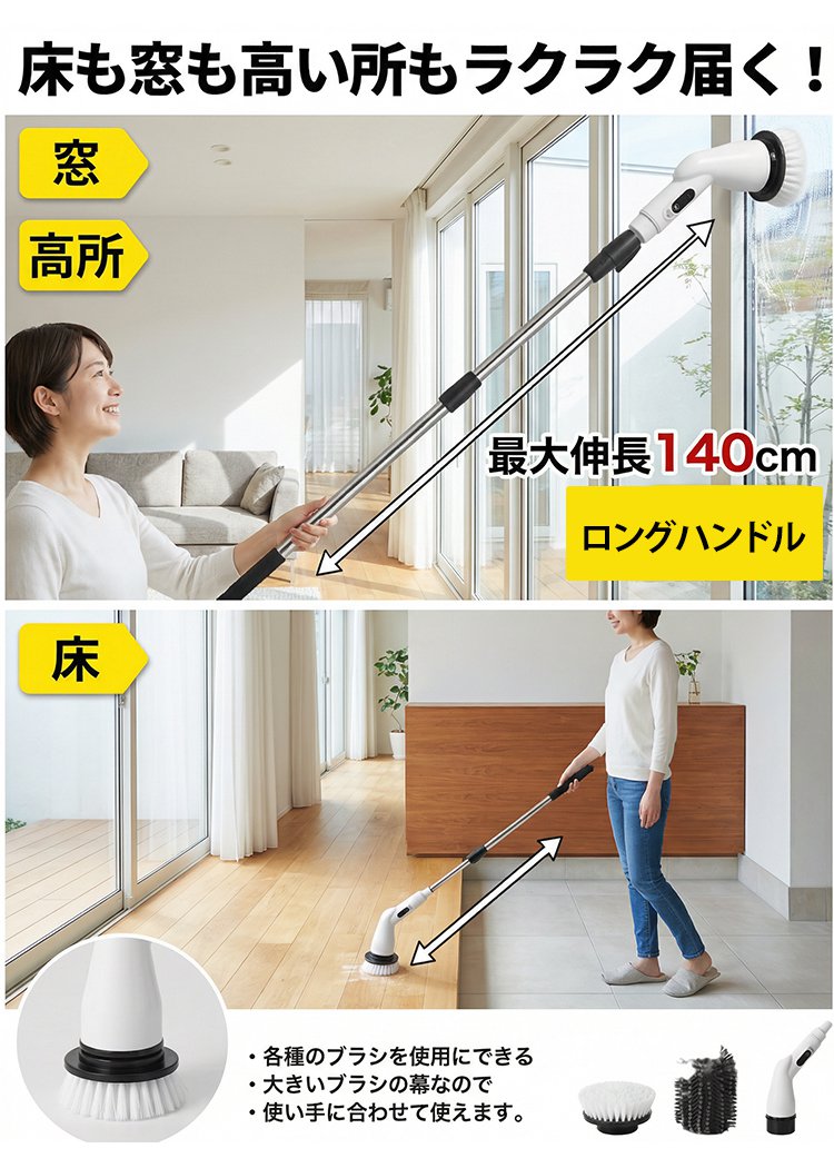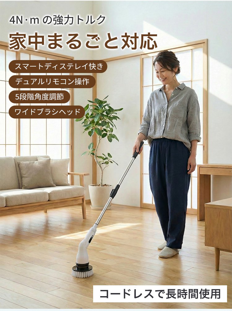 伸縮式ハンドルコードレス電動クリーニングブラシ