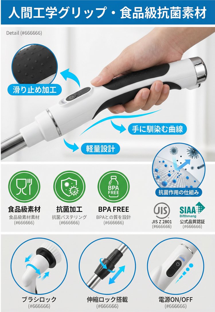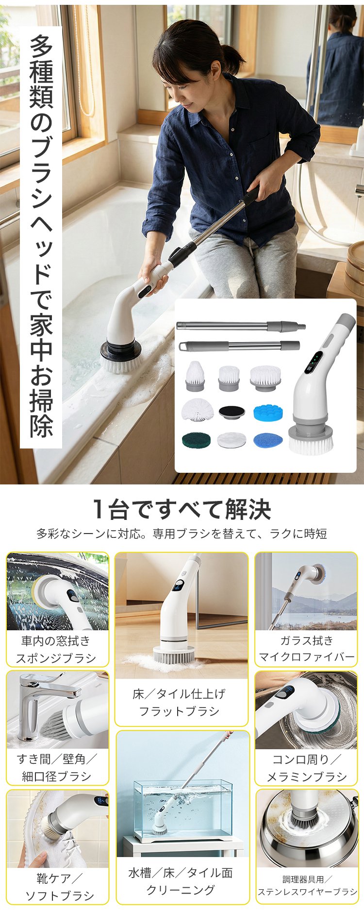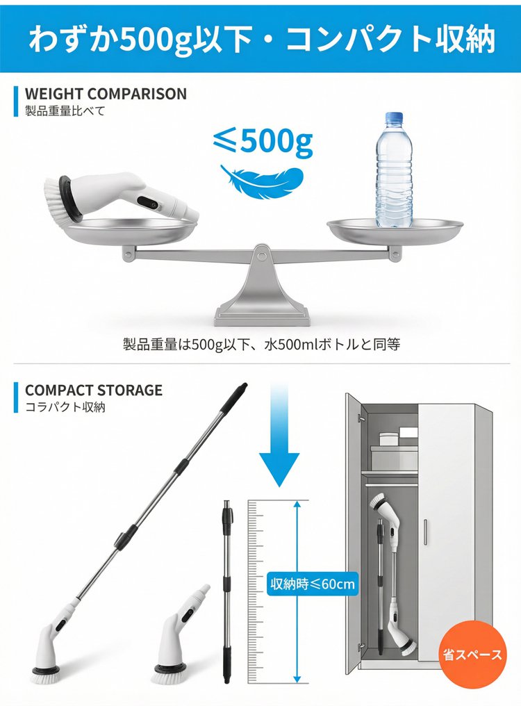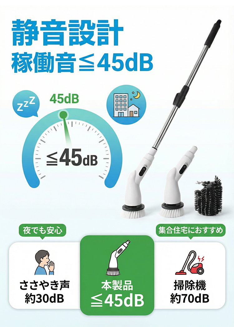 伸縮式ハンドルコードレス電動クリーニングブラシ