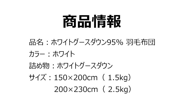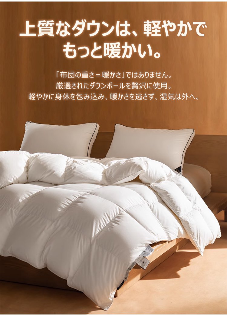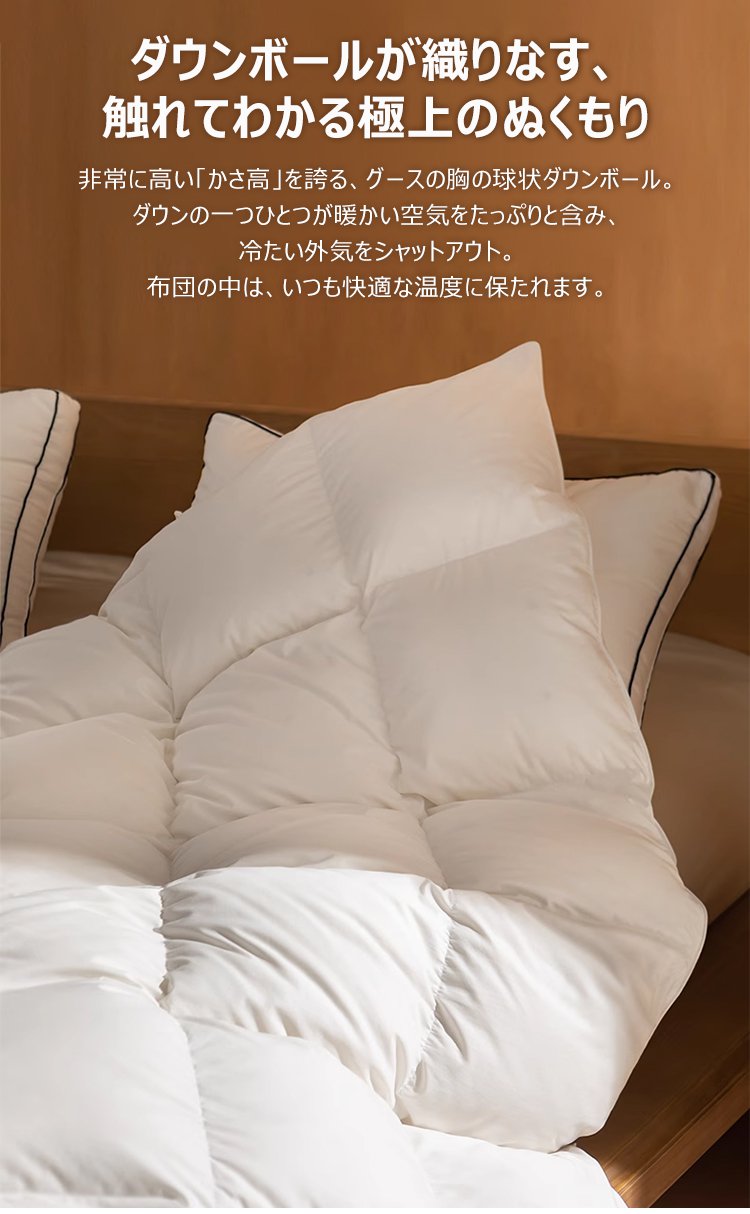 最高品質クラス ホワイトグースダウン95%の羽毛布団