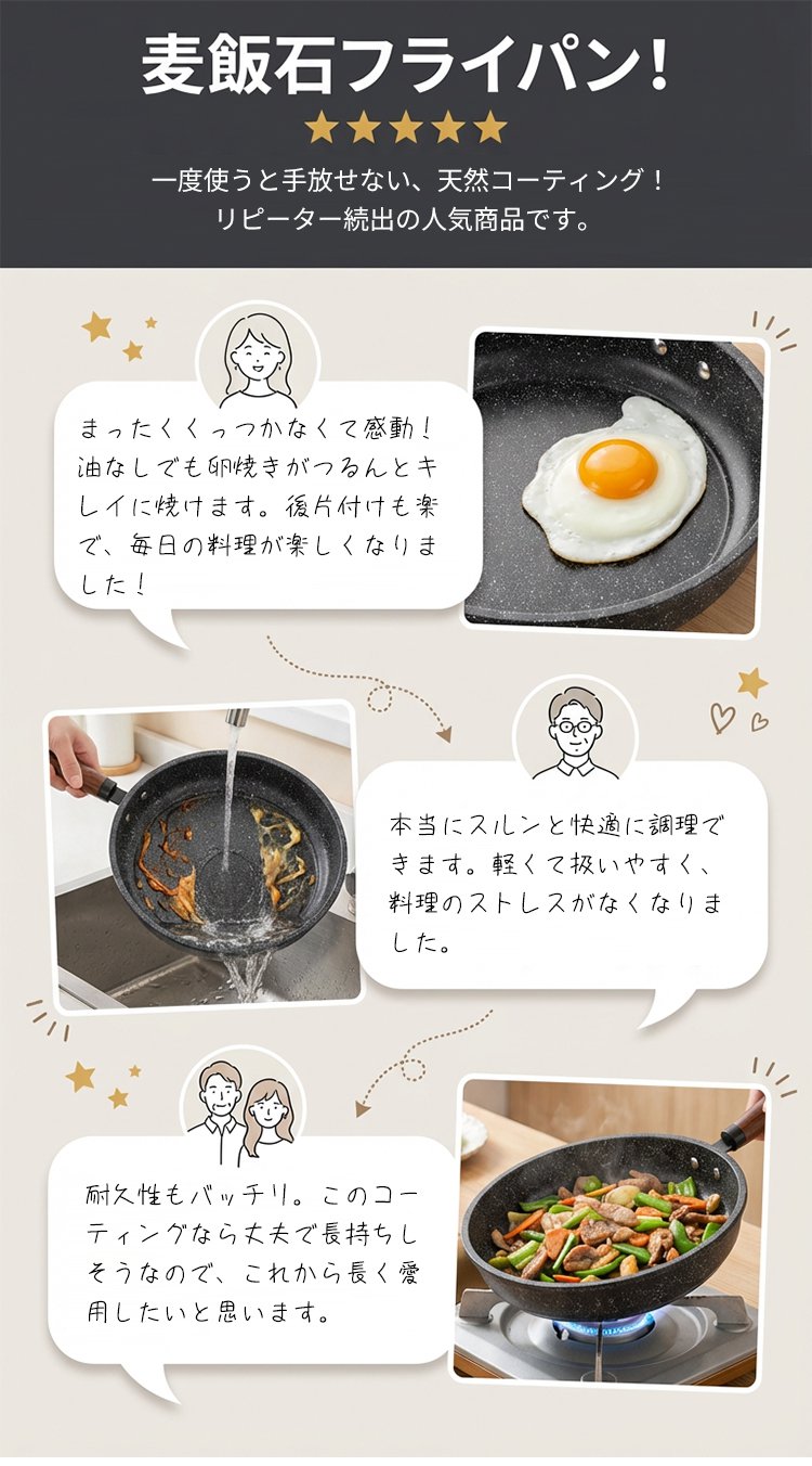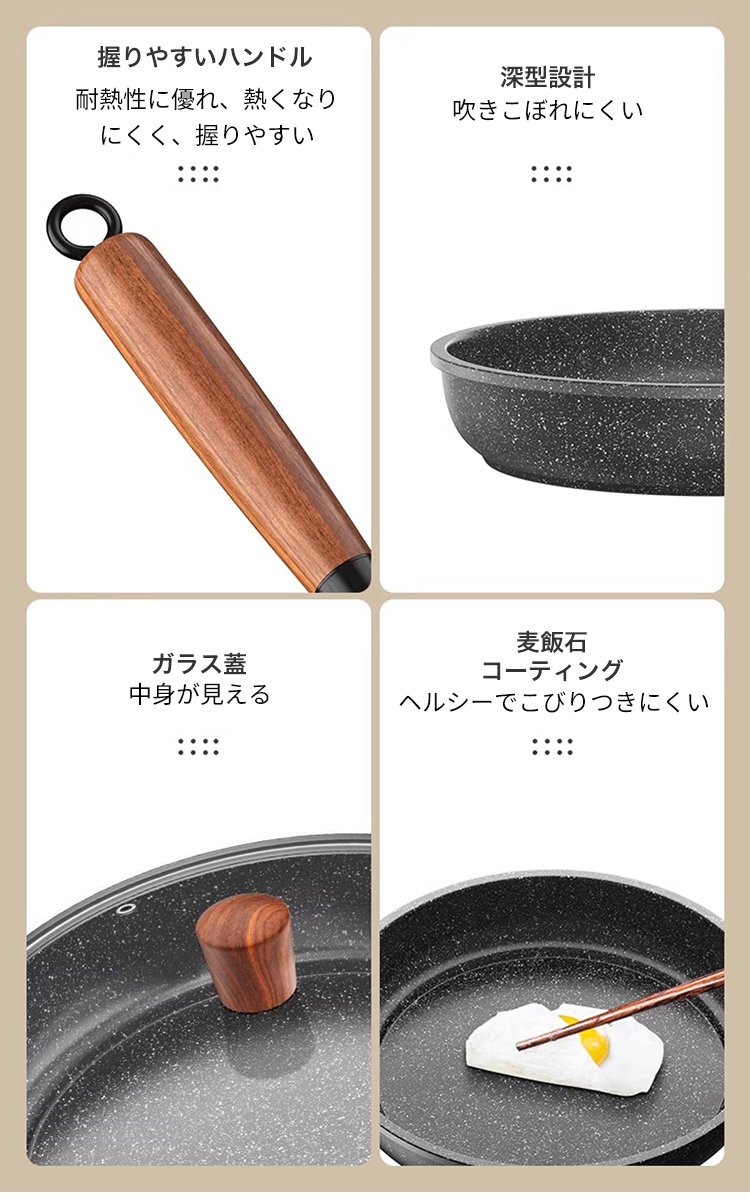 【IH・ガス対応】麦飯石フライパン