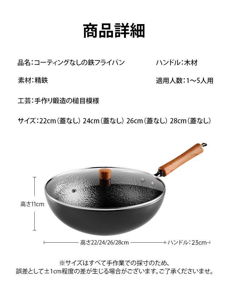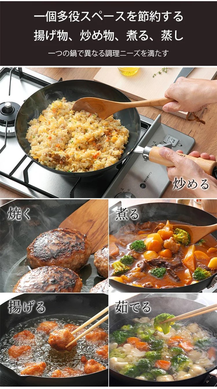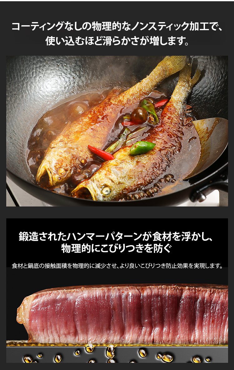 コーティングなしの鉄フライパン