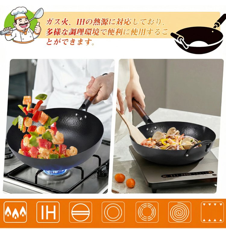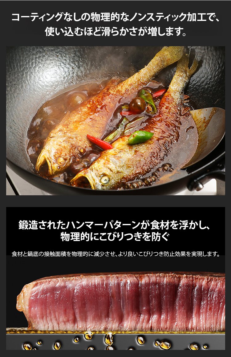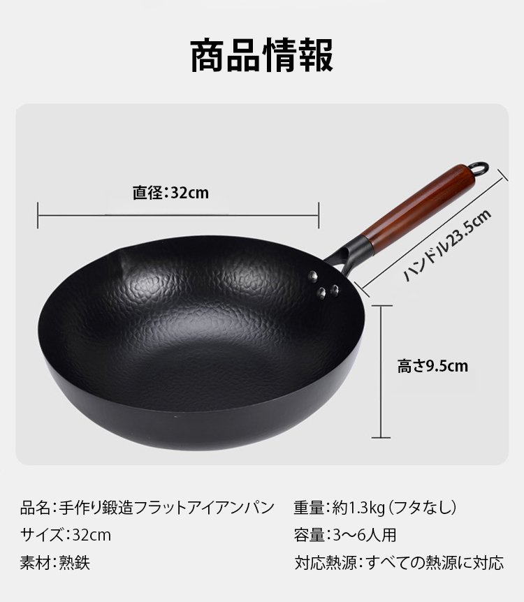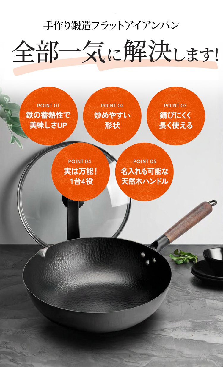 「コーティングなし」手作り鍛造フラットアイアンパン